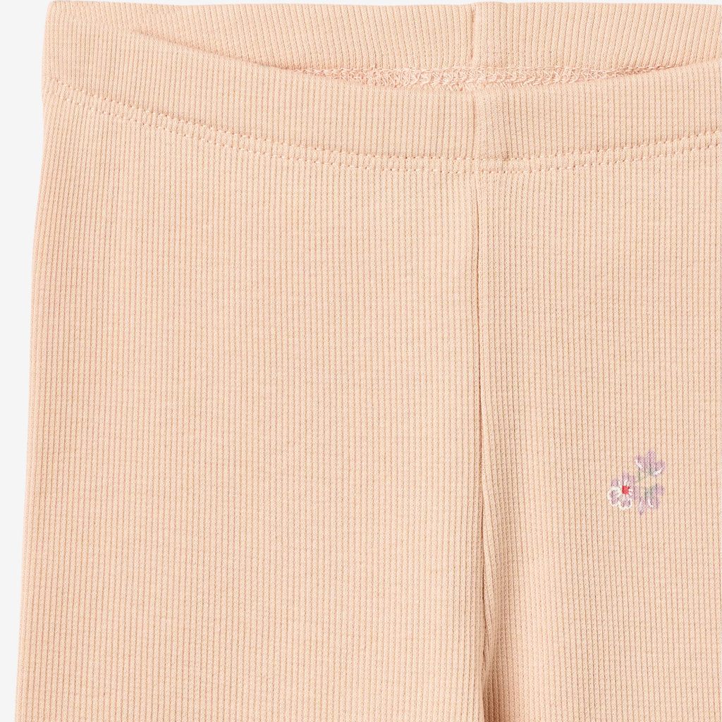 2-pack of jersey leggings in soft organic cotton for babies.- Fitted- Elastic at the waist- One in a solid colour - One with hand drawn signature printThese lovely and soft leggings are unisex and are a true essential in your baby’s wardrobe. The leggings are fitted and has an elastic at the waist. They can easily be styled on their own with a body, sweatshirt and knit, or as an extra layer underneath one of our dresses and/or trousers.