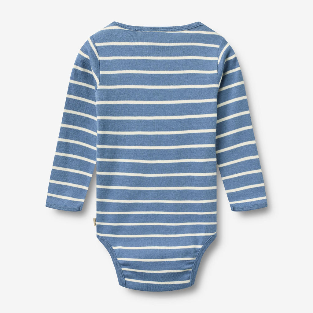 Long-sleeved body with stripes in soft organic cotton for babies.- Press buttons at the shoulder and crotch- Rib at the neckline, sleeve and bottom hem in contrast colour- StripedOur body is unisex and a true essential in your baby’s wardrobe, as it can be worn on its own or as an extra layer underneath everyday clothing. The bodies either have press buttons at the shoulder or buttons at the neck for better comfort, when you are dressing your baby.