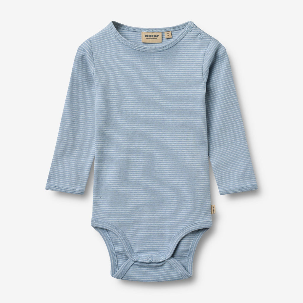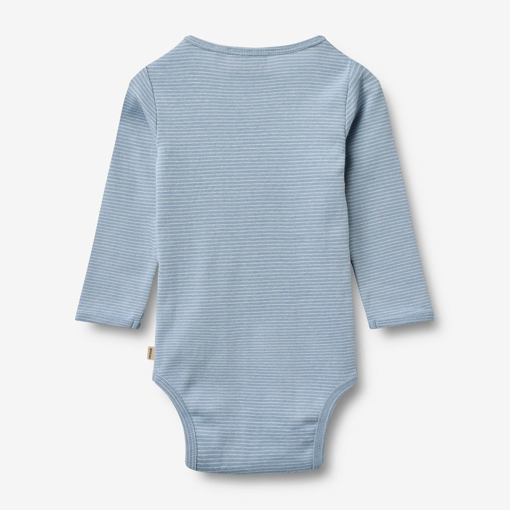 Long-sleeved basic body with stripes in soft organic cotton for babies.- Press buttons at the shoulder and crotch- StripedThis body is unisex and a true essential in your baby’s wardrobe, as it can be worn on its own or as an extra layer underneath everyday clothing. The bodies either have press buttons at the shoulder or buttons at the neck for better comfort, when you are dressing your baby.