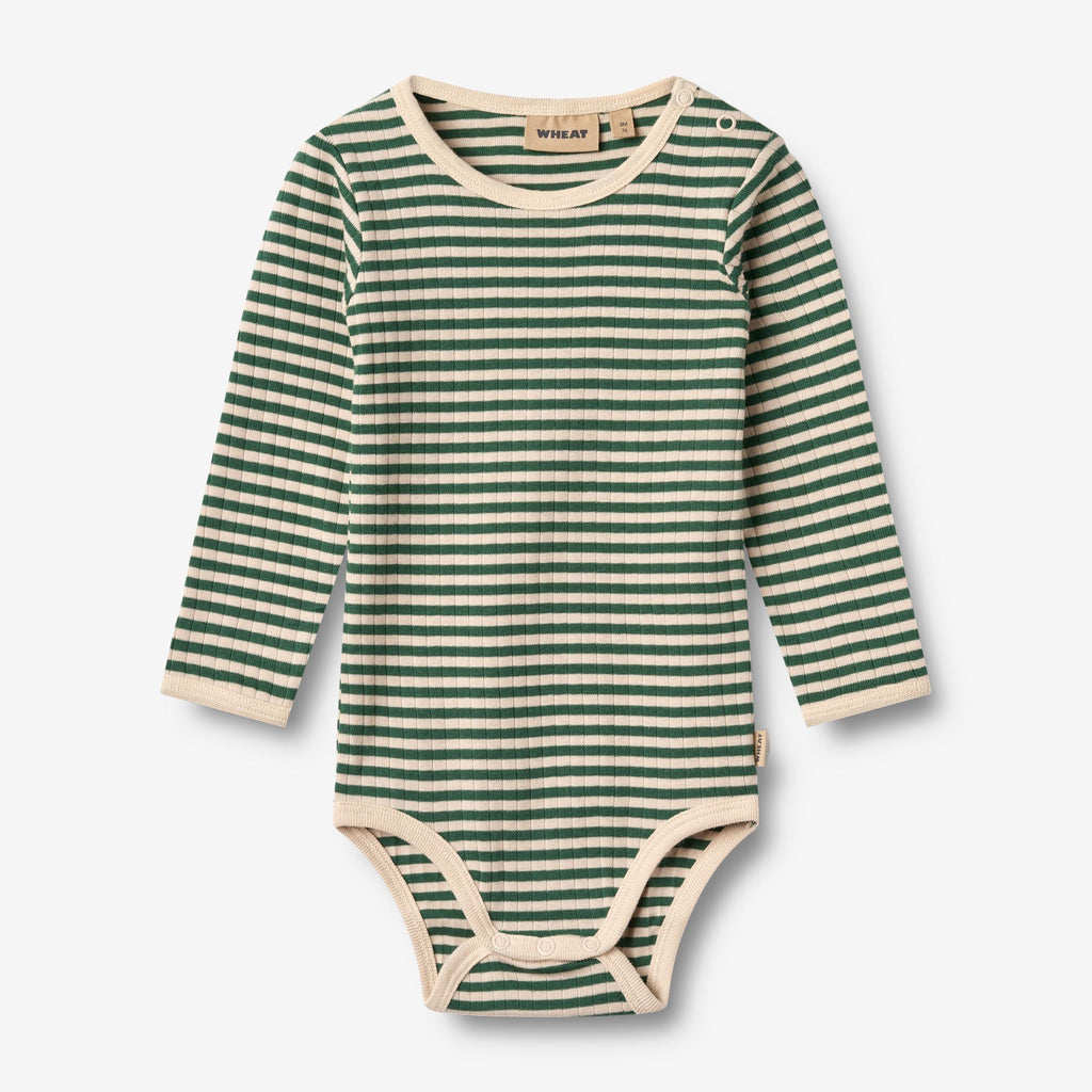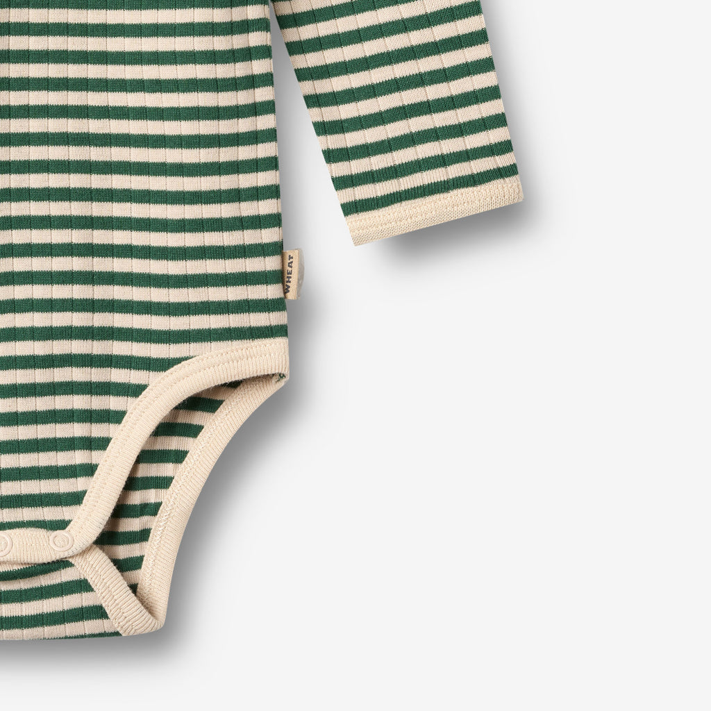 Long-sleeved body with stripes in soft organic cotton for babies.
