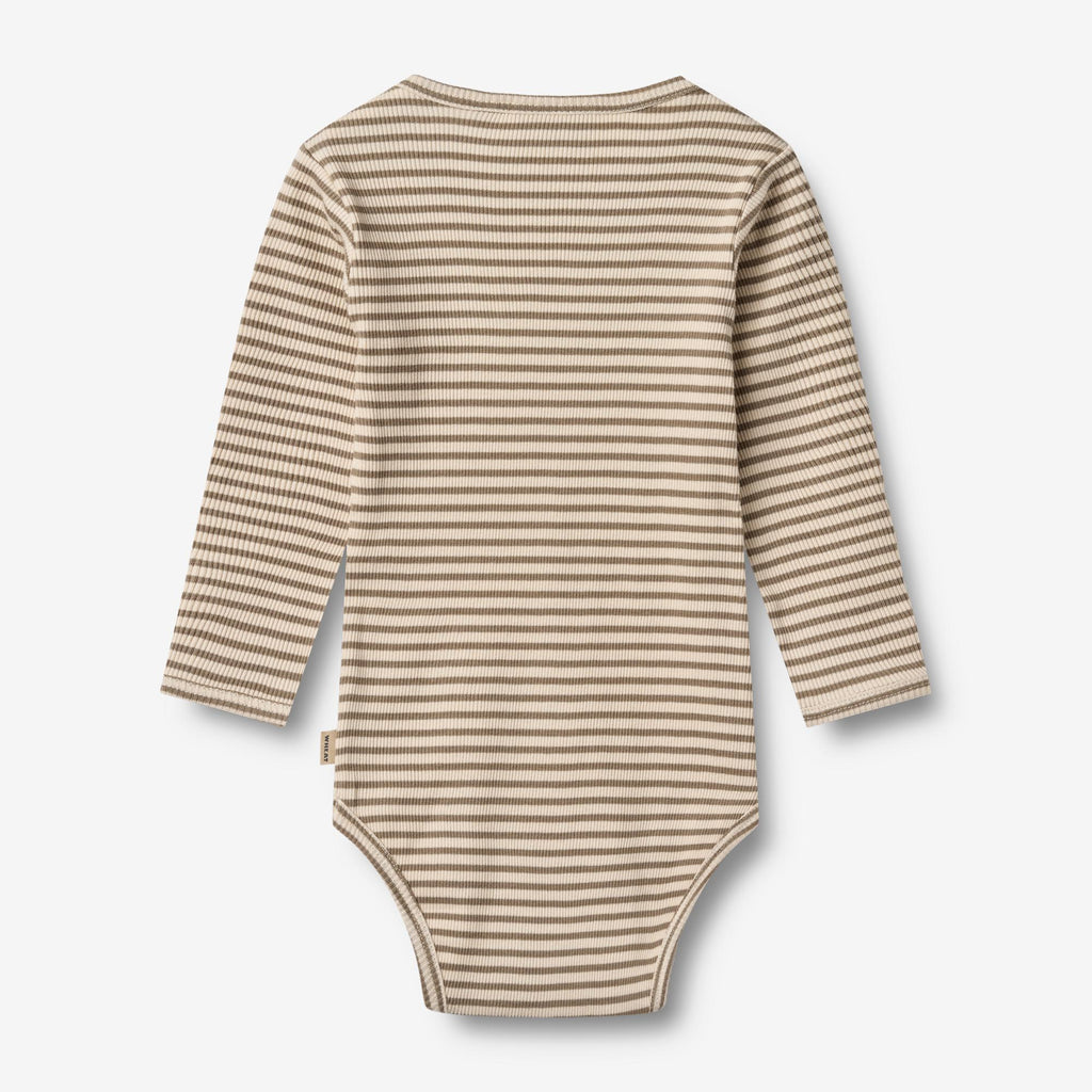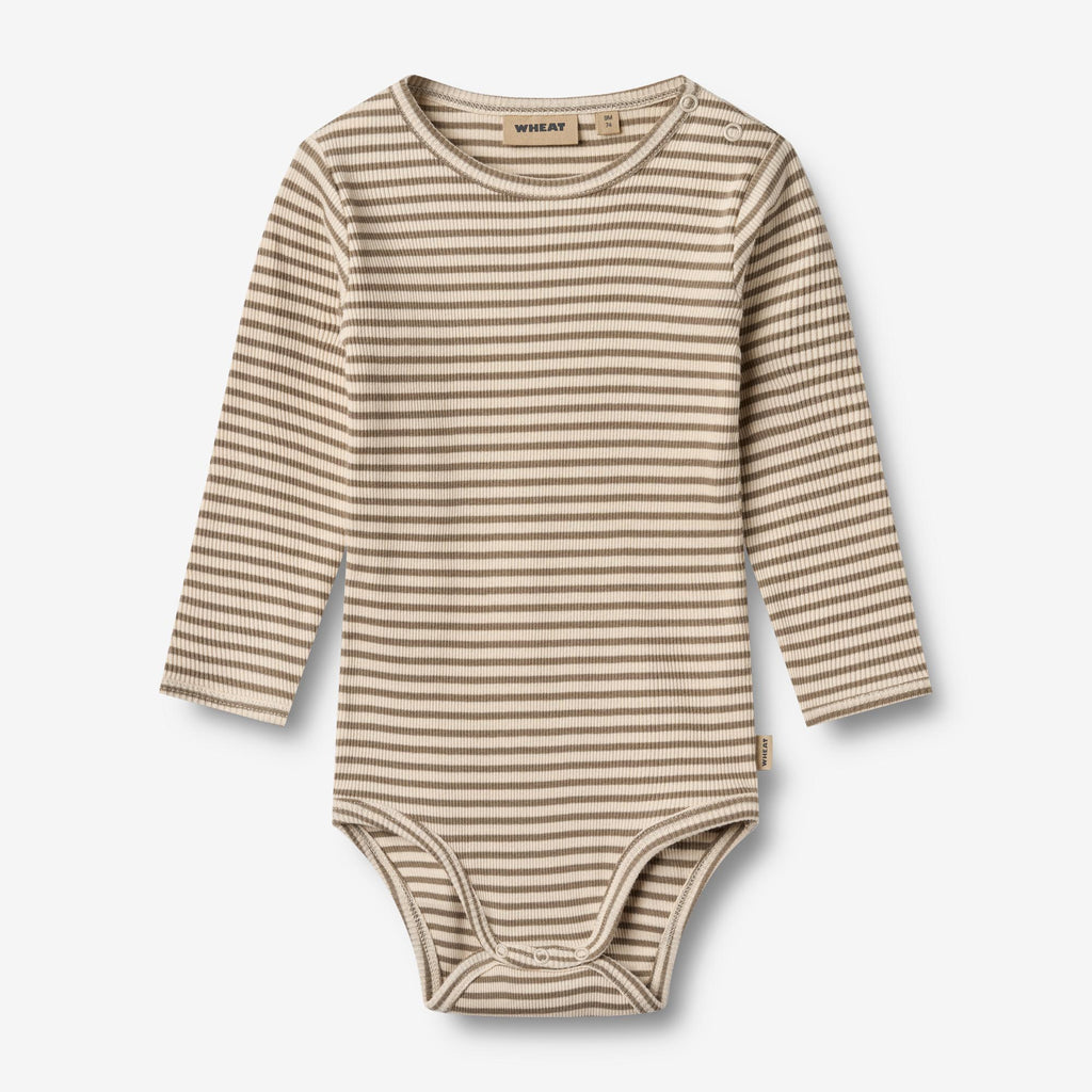 Cute long-sleeved rib body with stripes in soft organic cotton for babies.- Press buttons at the shoulder and crotch- Ribbed structure- StripedWheat's body is unisex and a true essential in your baby’s wardrobe, as it can be worn on its own or as an extra layer underneath everyday clothing. The bodies either have press buttons at the shoulder or buttons at the neck for better comfort, when you are dressing your baby. The body also has press buttons at the bottom, which makes it easier for you to access your baby’s diaper.