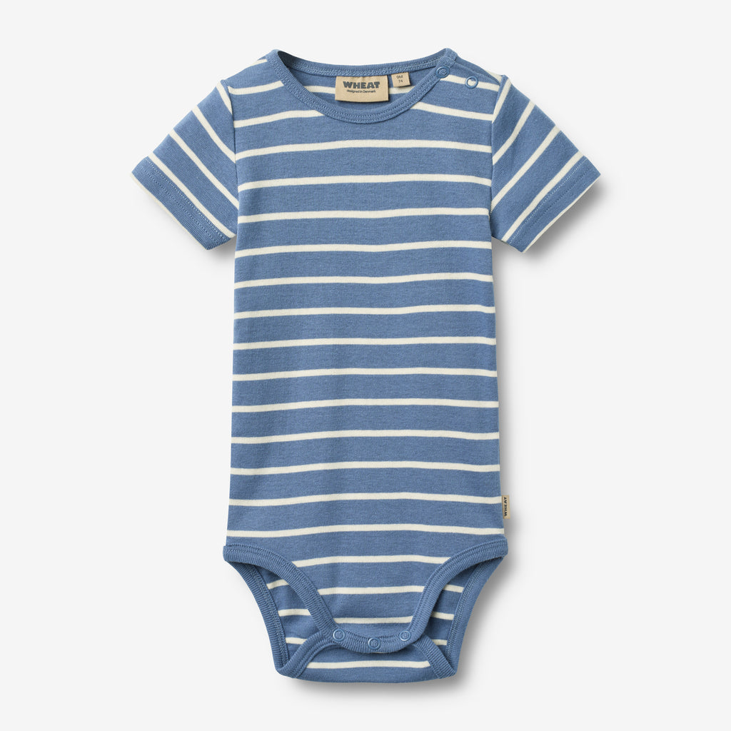 Short-sleeved body with stripes in soft organic cotton for babies.- Regular/slim fit- Short sleeves- Press buttons at the shoulder and crotch- StripedSoft and breathable, this organic cotton body is a must-have in your baby’s wardrobe. Designed for comfort and ease, it features practical press buttons for quick diaper changes and a snug fit that works perfectly on its own or as a layering piece.