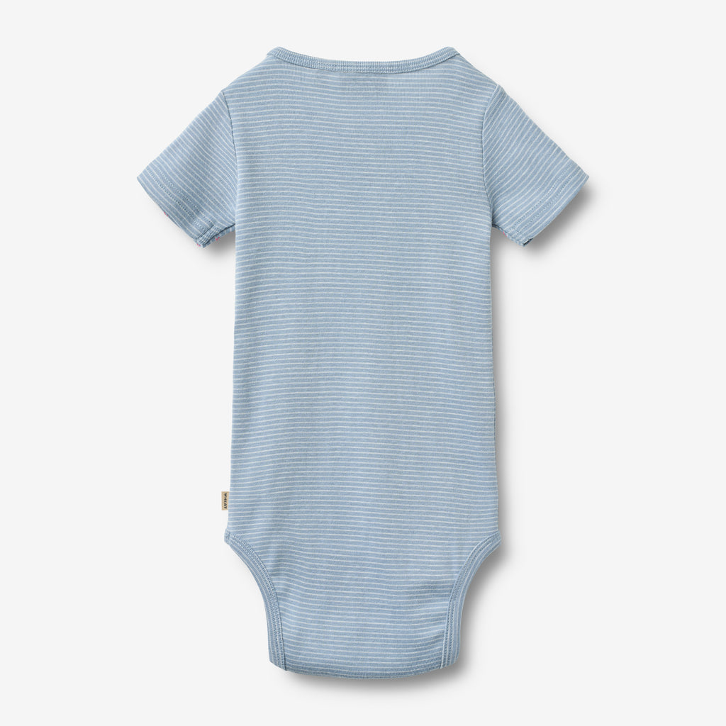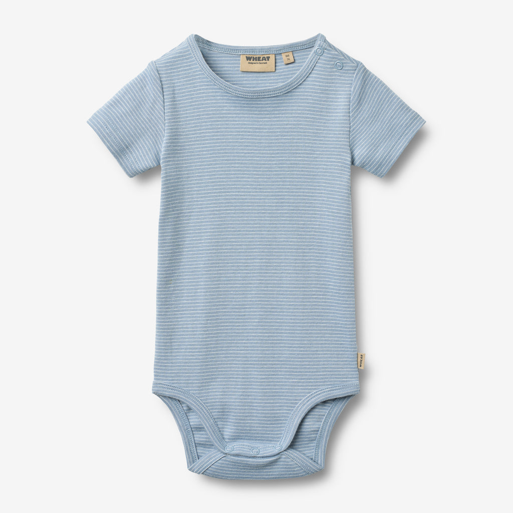 Short-sleeved body with stripes in soft organic cotton for babies.- Regular/slim fit- Short-sleeves- Press buttons at the shoulder and crotch- StripedSoft and breathable, this organic cotton body is a must-have in your baby’s wardrobe. Designed for comfort and ease, it features practical press buttons for quick diaper changes and a snug fit that works perfectly on its own or as a layering piece.