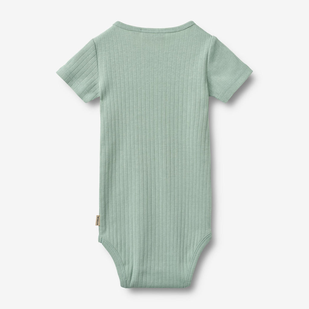 Cute short-sleeved body with stripes in soft organic cotton for babies.