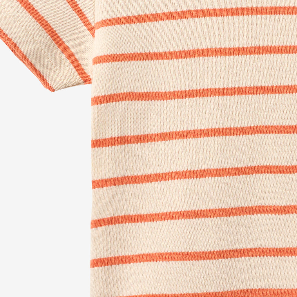 Short-sleeved body with stripes in soft organic cotton for babies.- Regular/slim fit- Short sleeves- Press buttons at the shoulder and crotch- StripedSoft and breathable, this organic cotton body is a must-have in your baby’s wardrobe. Designed for comfort and ease, it features practical press buttons for quick diaper changes and a snug fit that works perfectly on its own or as a layering piece.