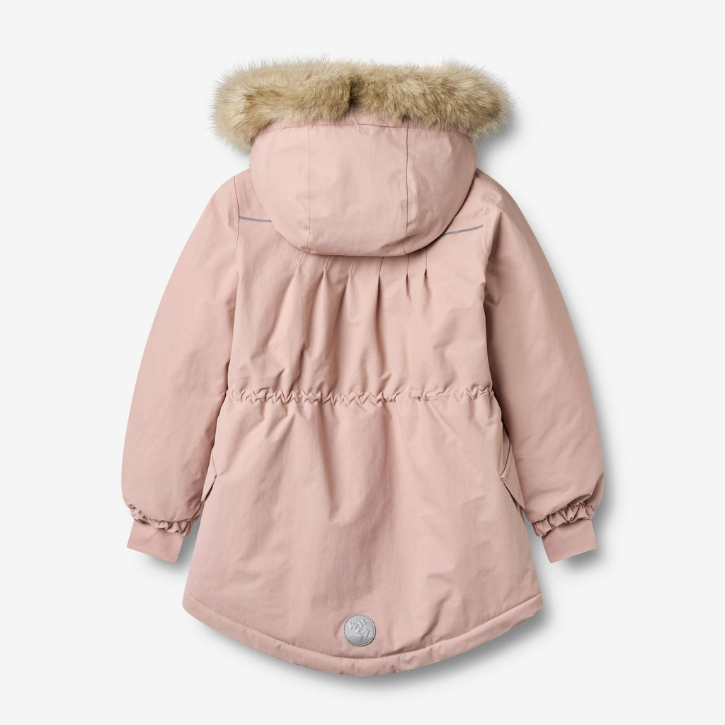 A-shaped technical jacket in waterproof and breathable fabric for children.- Lined with soft fleece- Adjustable drawstring at the waist- Pleats on the back- Detachable hood with detachable faux fur- YKK-zipper with chin guard and placket with press buttons- Welt pockets with pocket flaps and velcro closure- Storm cuffs - Taped seams- ReflectorsWheat's tech jacket is made in breathable, wind- and waterproof material, and is perfect for the many cold autumn and winter days. It is designed with performance and comfort in mind, as the material is durable and dirt repellent and therefore easy to clean and maintain.The technical jacket is intended as a winter jacket, as it has fleece lining and is made to keep your child warm all day long.