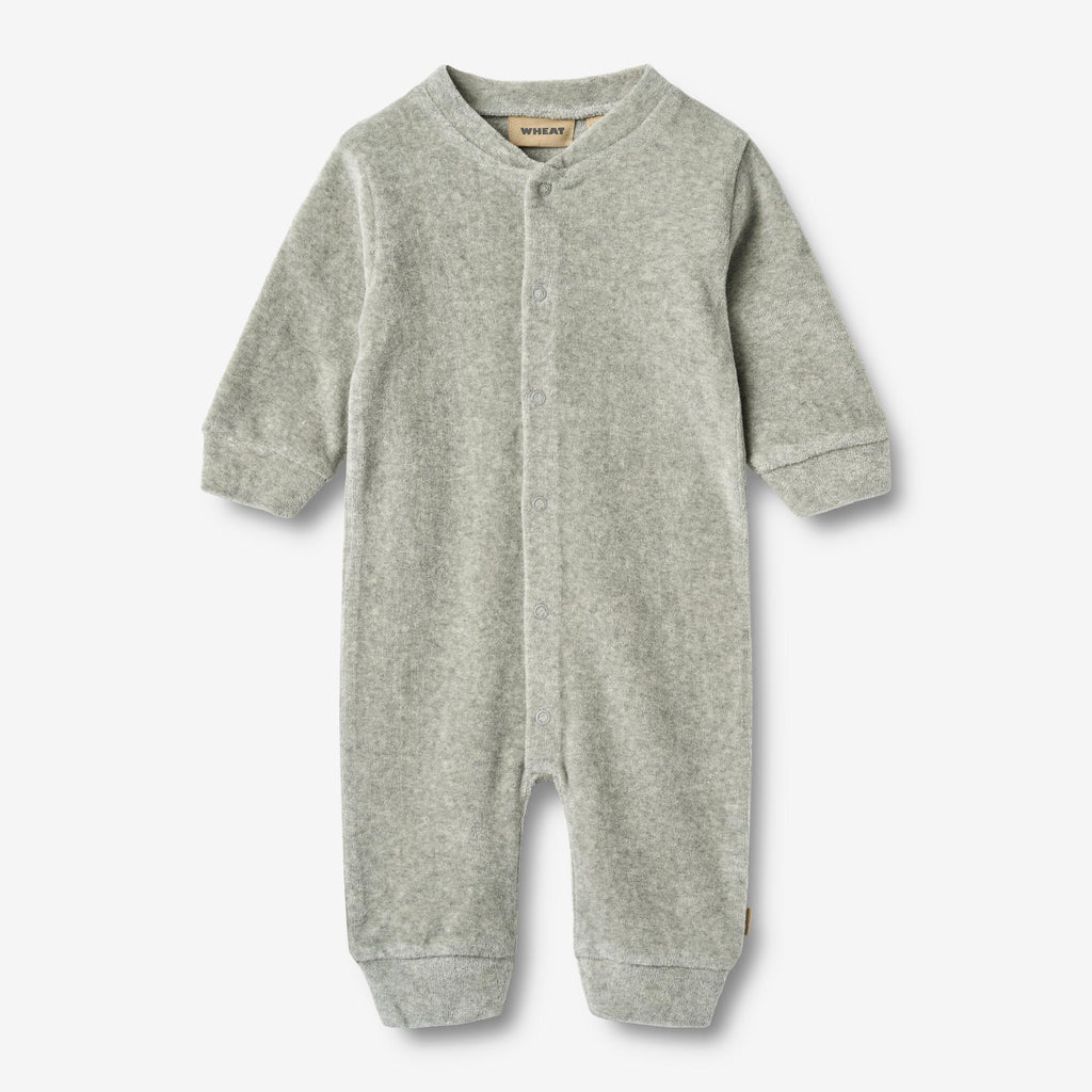 Long-sleeved sleepsuit in soft brushed organic cotton for your baby. - Regular/loose fit- Press buttons down the front and along the inseam- Brushed cottonWheat's sleepsuit for babies is both cute and comfortable. The sleepsuit has press buttons at the shoulder or down the front and along the inseam of the legs, which makes it easier for you to dress your baby. The sleepsuit can be worn on its own as pajamas or as an extra layer underneath everyday clothing.