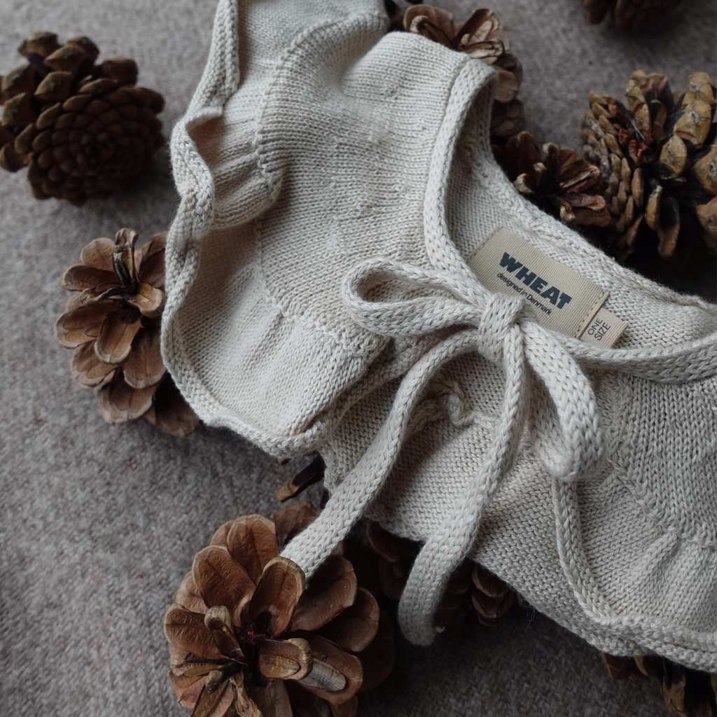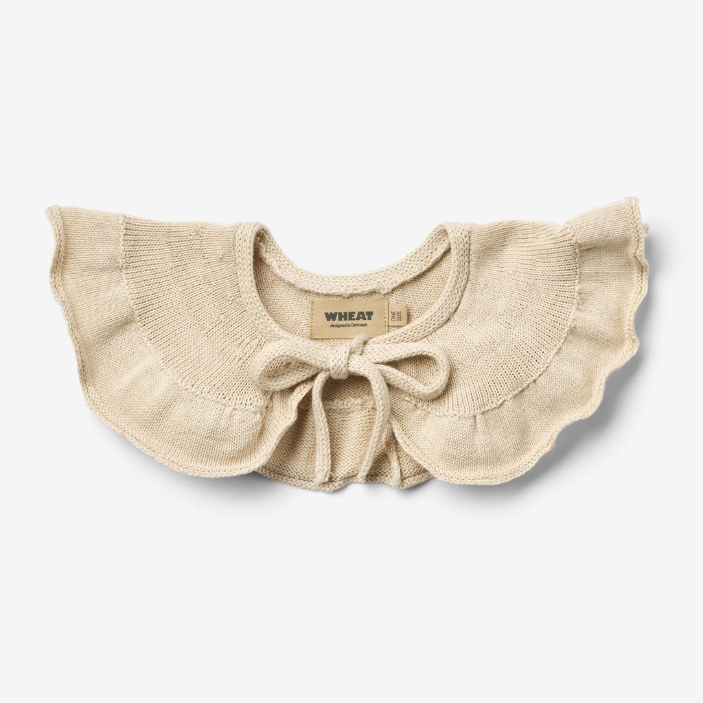 Elegant knit collar with lace details in soft organic cotton.- Knitted detailing- Tie closure Wheat's sweet knit collar has a perfect fit, which make them easy and comfortable for your child to wear. It has tie closure at the front to make it easier for your child to get dressed. The collar is easy to style with one of our dresses, bluses or shirts to complete the cute festive look.
