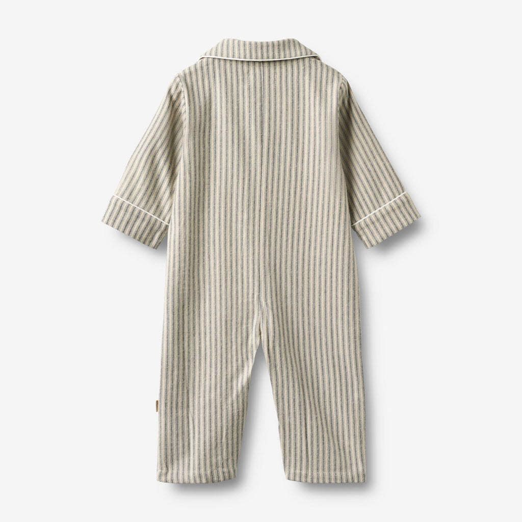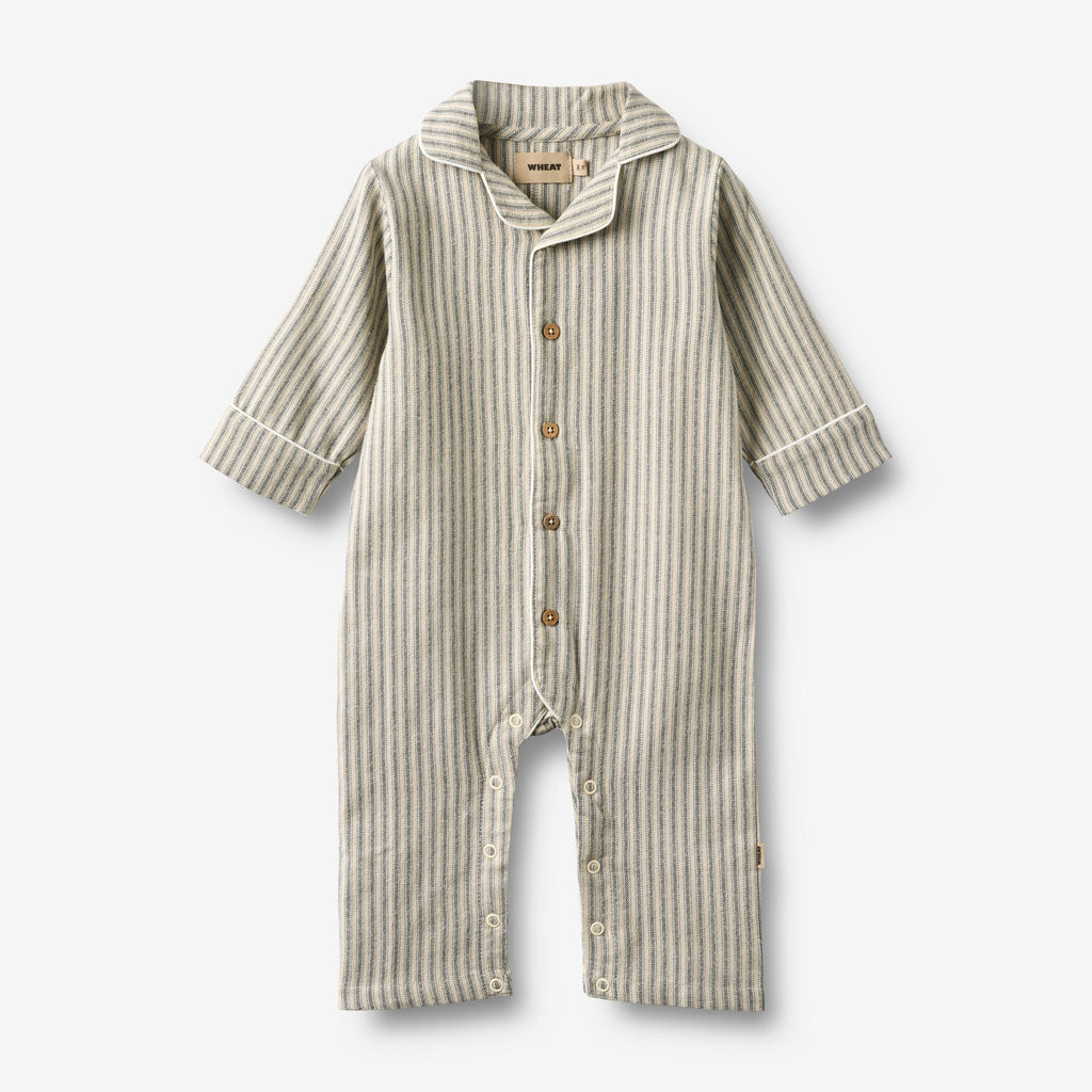 Long-sleeved night suit in soft organic cotton for your baby.- Regular fit- Collar- Buttons down the front- Striped woven fabricWheat’s sweet night suit brings some cuteness into your baby’s wardrobe. The suit is comfortable to wear and is perfect for those crisp Christmas days at home.