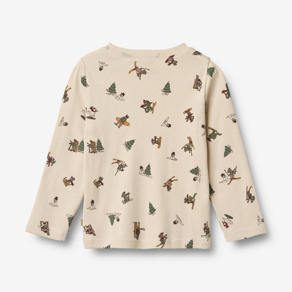 Comfy pajamas with print in soft organic cotton for children. - Long-sleeved T-shirt with rib neckline- Pants: Soft elastic at the waist - Rib cuffs and leg hems- Signature printOur sweet and soft nightwear is comfortable to wear and perfect for the cold autumn and winter nights. The pajamas set comes with matching T-shirt and pants and has a beautiful hand drawn print made by Wheat's in-house design team.