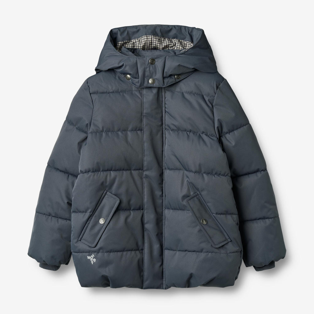 Classic puffer jacket with detachable and adjustable hood for the junior child. - Regular fit - Detachable and adjustable hood- Rib storm cuffs- Coil zipper down the front with placket and press buttons- Welt pockets with pocket flaps and press buttons- Reflective detailsWheat's puffer jacket with technical padding is perfect for the many cold autumn and winter days. It is designed with high durability and comfort, as it is water and wind resistant, dirt repellent and easy to clean. The jacket has a simple and classic look with practical details such as detachable and adjustable hood, storm cuffs and welted pockets. Please note that the puffer styles do not have taped seams and are therefore not entirely waterproof.