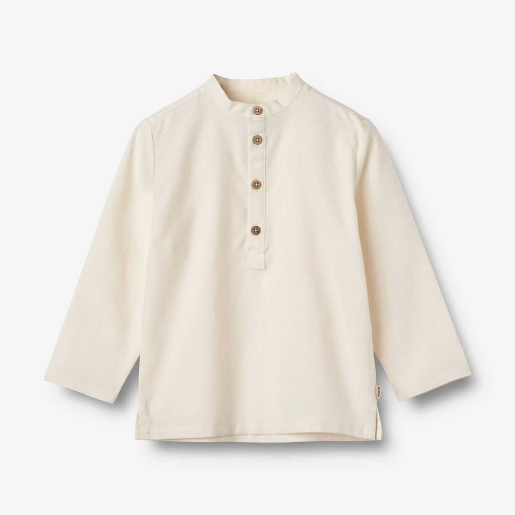 Long-sleeved shirt in soft organic cotton for children. - Regular fit- Buttons halfway down the front- Without collar and cuffs for a casual lookWheat's shirts are unisex and are perfect for the many special occasions and cozy days. The shirt is comfortable to wear with a relaxed fit and buttons down the front. The shirt gives the outfit a more classic look and you can easily style it with a pair of leggings or trousers and a knit to complete the look.