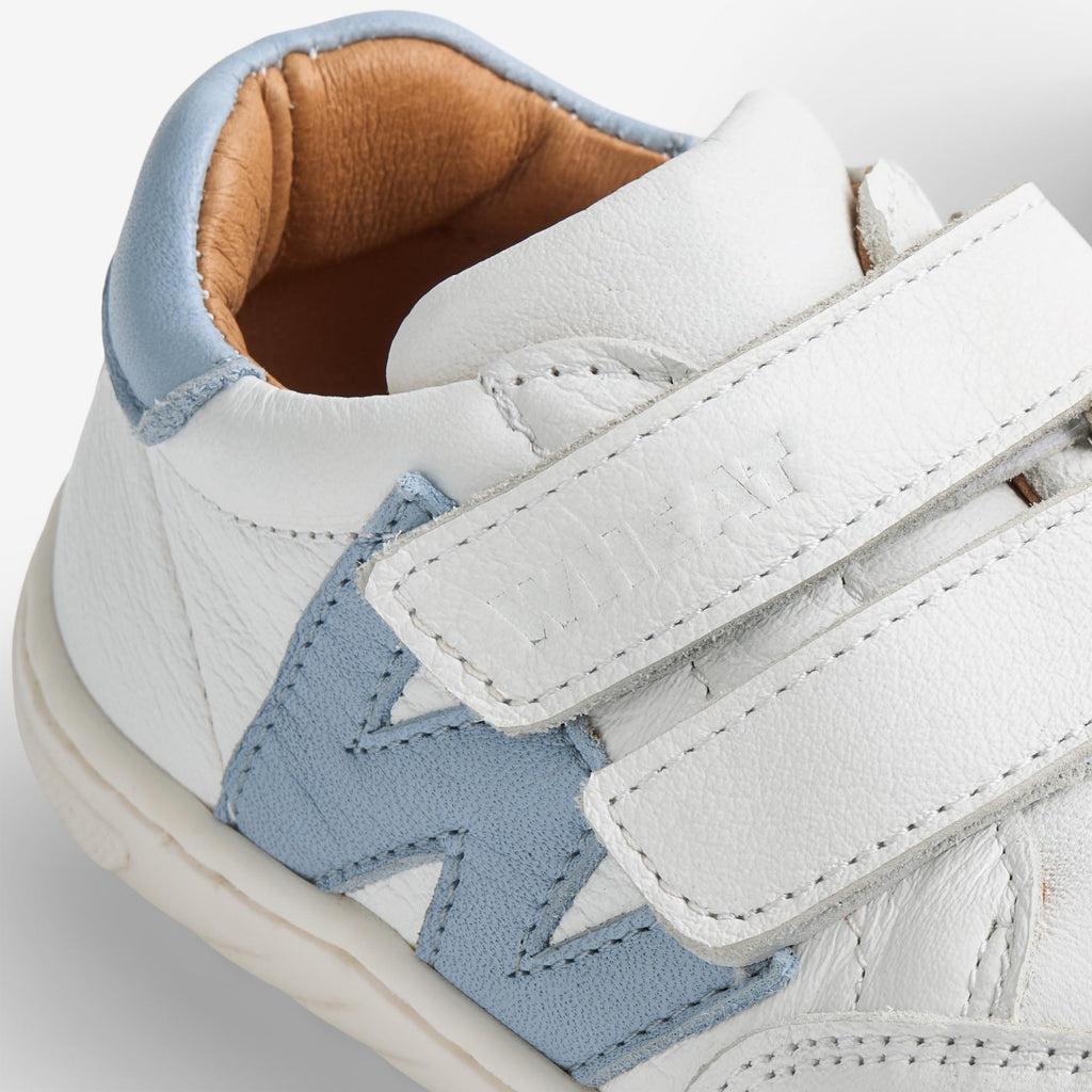 Wheat’s barefoot sneaker supports natural foot movement with a lightweight, flexible design and a wide fit for growing feet. Double velcro straps make the shoe easy to put on and adjust.