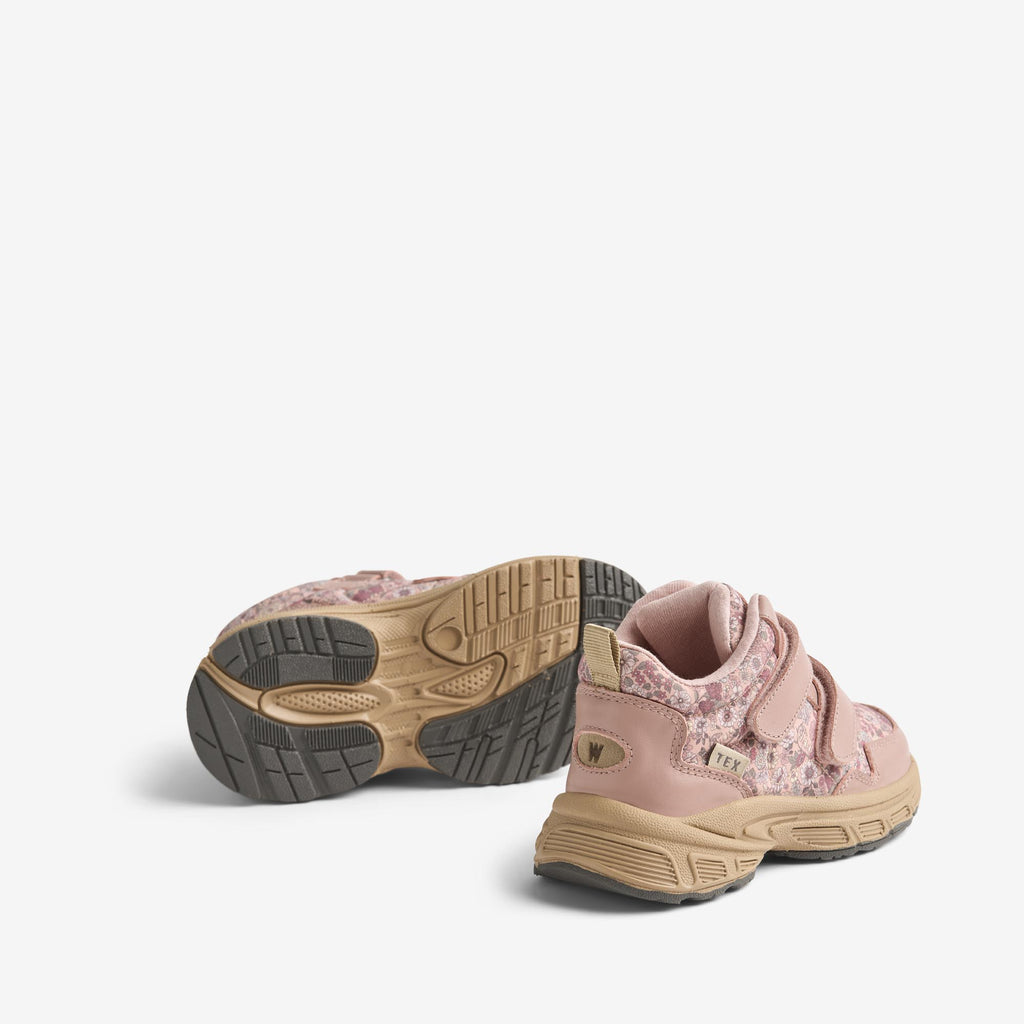 Lightweight sneakers with velcro closure and practical Tex membrane for your child. - Tex membrane - Velcro strapsThe sneaker has two adjustable velcro strap across the foot to ensure a good fit. The simple closure makes the shoe easy for your child to put on. The shoe has a 100% waterproof, breathable tex membrane by the sole that protects against moisture from below. Water may enter from above. Impregnation is recommended.Wheat’s sneakers are made in breathable and sweat-absorbent materials, which ensures good comfort for your child. This sporty sneaker is made in a combination of LWG certified leather and recycled polyester and has a soft organic cotton lining. The upper is available in beautiful handdrawn prints.The insole is made with latex, which is a natural material that has a lot of bounce for more comfortable steps. The latex is covered with chrome and metal free tanned leather to make sure that no toxic materials touch the skin. The outsole is lightweight and flexible and consists of two components. The midsole is made with a very light EVA material, while the outsole is made with rubber for great grip and traction.It is normal in size with a firm grip on your child's foot. Recommended allowance for growth: 1-1,5 cm Inner measurement: Size 24 = 15,4 cmSize 25 = 16,1 cmSize 26 = 16,7 cmSize 27 = 17,4 cmSize 28 = 18,1 cmSize 29 = 18,7 cmSize 30 = 19,4 cmSize 31 = 20 cmSize 32 = 20,7 cmSize 33 = 21,4 cmSize 34 = 22 cmSize 35 = 22,7 cm