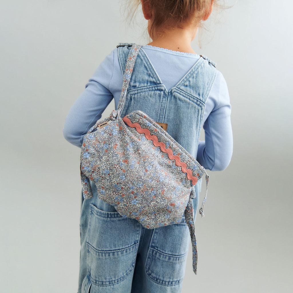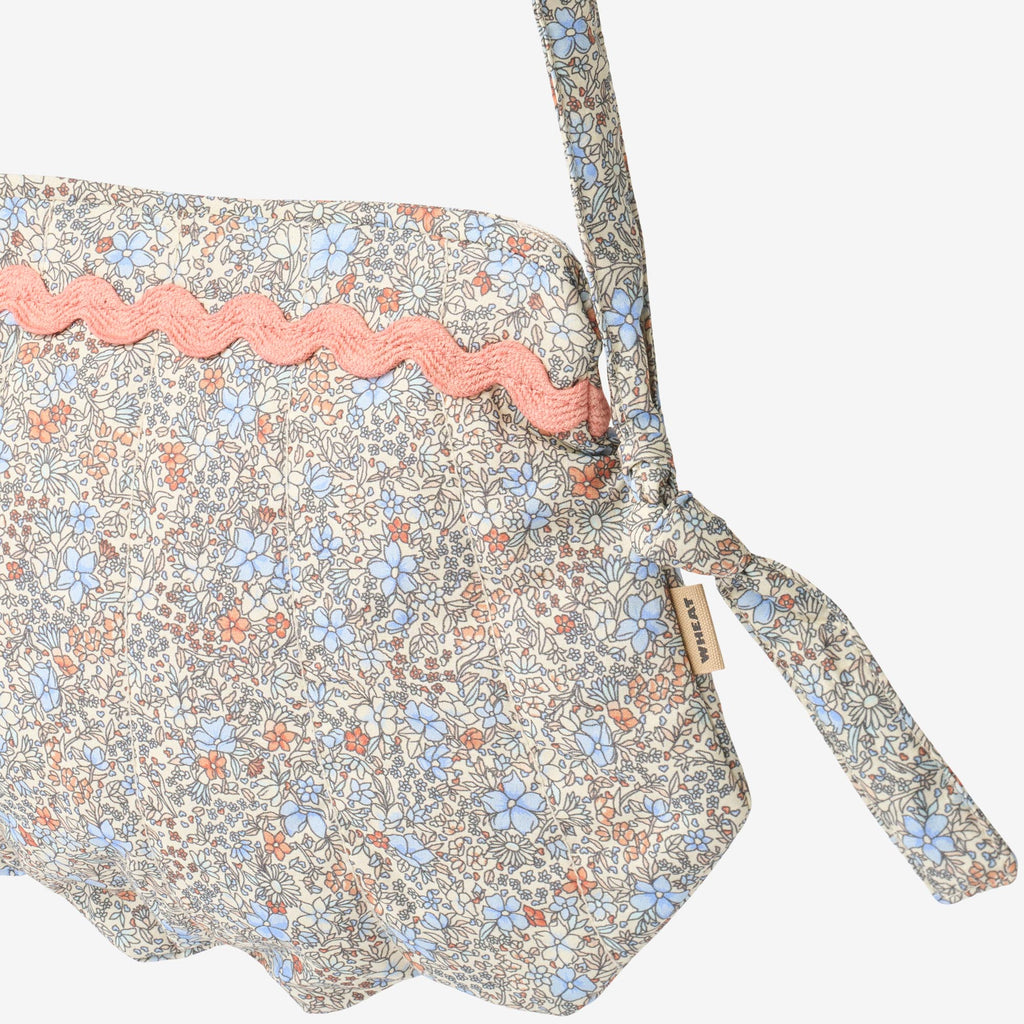 Printed shoulder bag with embroidery in soft organic cotton for children. - Zip opening with a knot- Strap is attached with a knot below loop- Zigzag lace detailing - Woven signature printed fabricThis beautiful woven shoulder bag is a must-have for all your summer adventures. Crafted from soft organic cotton, it features delicate lace details and a practical zip closure. All in all, perfect for keeping little treasures safe on the go.Measurements: Width at top: 18.5 cmWidth at widest point: 26 cmStrap length: 80 cm
