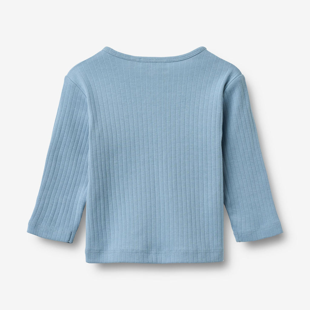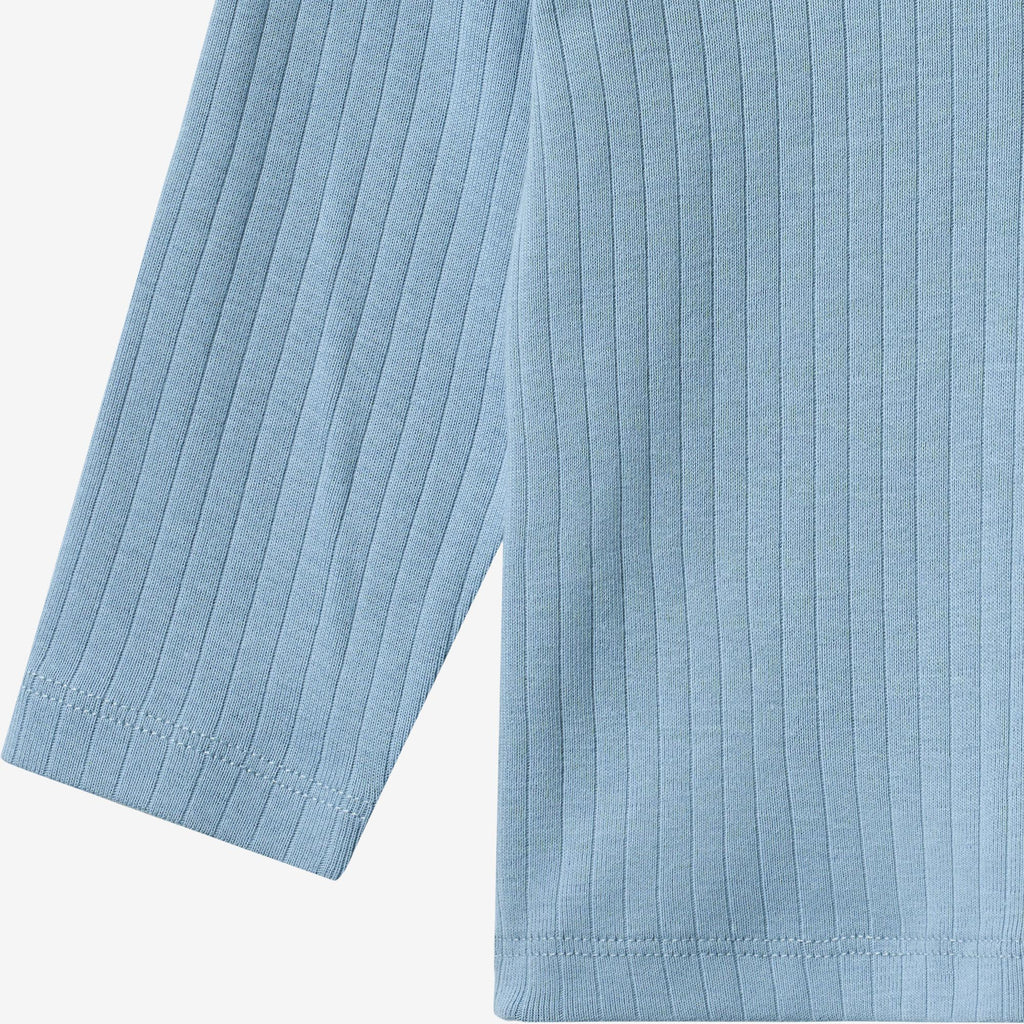 Long-sleeved rib t-shirt in soft organic cotton for babies. - Regular fit- Placket at the front with buttons- Dropped shoulders- Long sleeves- Ribbed structureThis classic rib T-shirt is made from soft organic cotton, ensuring a comfortable and breathable fit for everyday wear. Designed with a timeless look and a gentle stretch, it allows for easy movement, making it a versatile staple in your child’s wardrobe. Perfect for layering or wearing on its own, this T-shirt is ideal for any season.