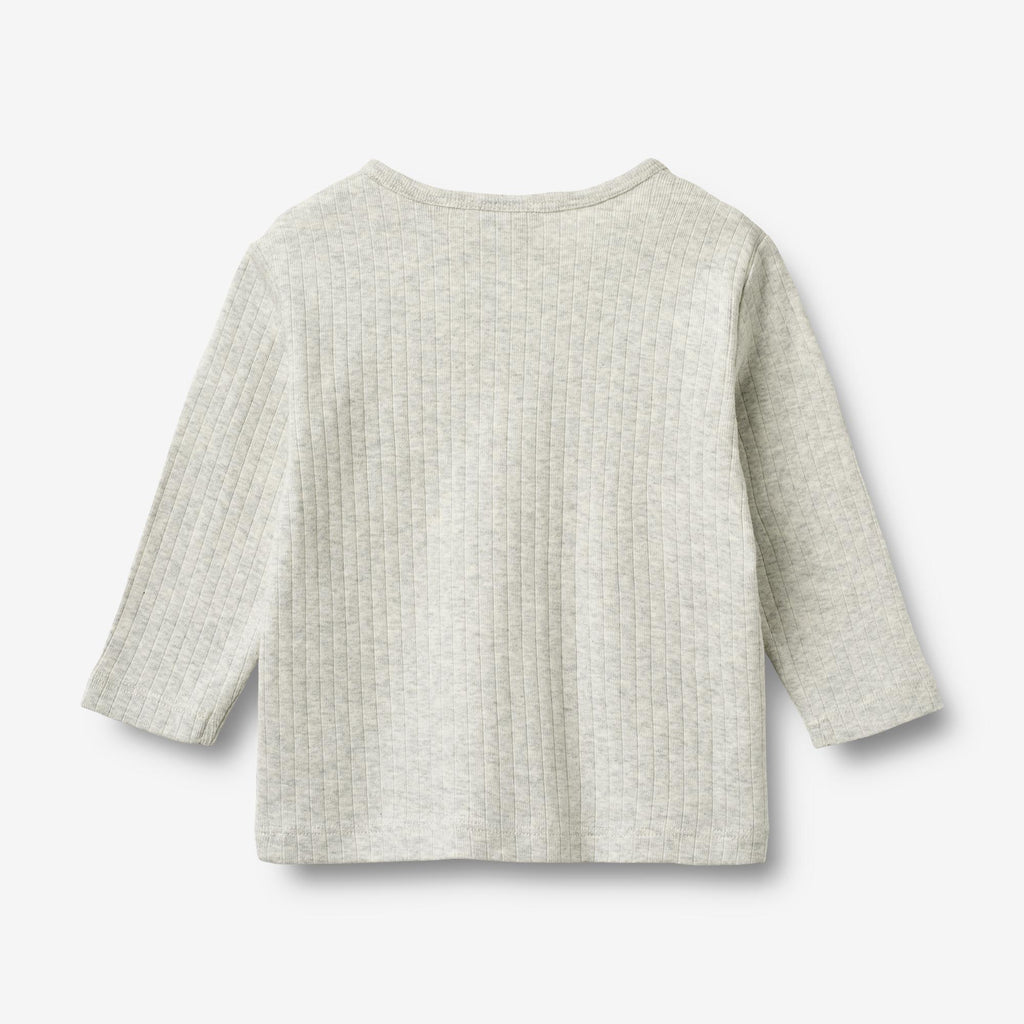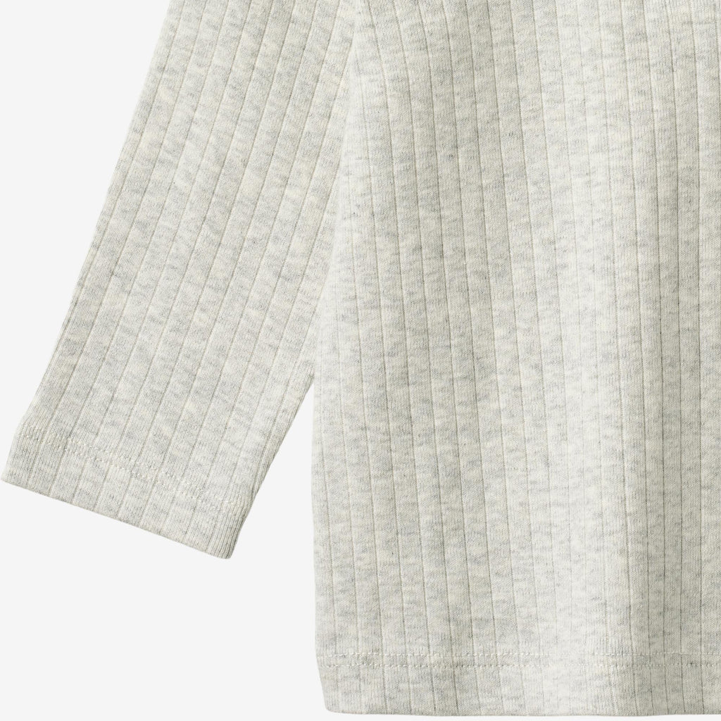 Long-sleeved rib t-shirt in soft organic cotton for babies. - Regular fit- Placket at the front with buttons- Dropped shoulders- Long sleeves- Ribbed structureThis classic rib T-shirt is made from soft organic cotton, ensuring a comfortable and breathable fit for everyday wear. Designed with a timeless look and a gentle stretch, it allows for easy movement, making it a versatile staple in your child’s wardrobe. Perfect for layering or wearing on its own, this T-shirt is ideal for any season.