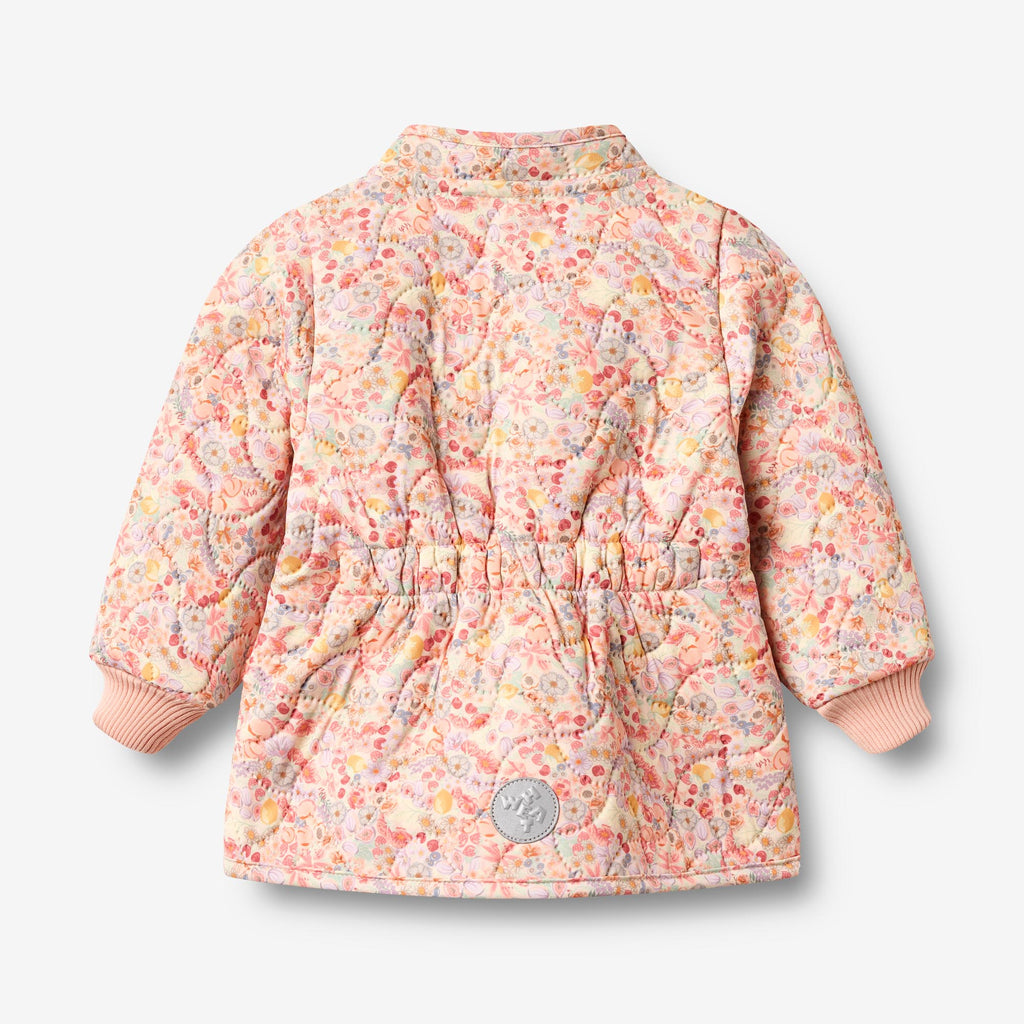 Wheat's Thermo Jacket Thilde is crafted from recycled polyester with a soft quilted lining, making it a comfortable choice for cooler days. The thermo quilt construction provides a gentle layer of warmth without being bulky, ideal for active play during autumn and spring.