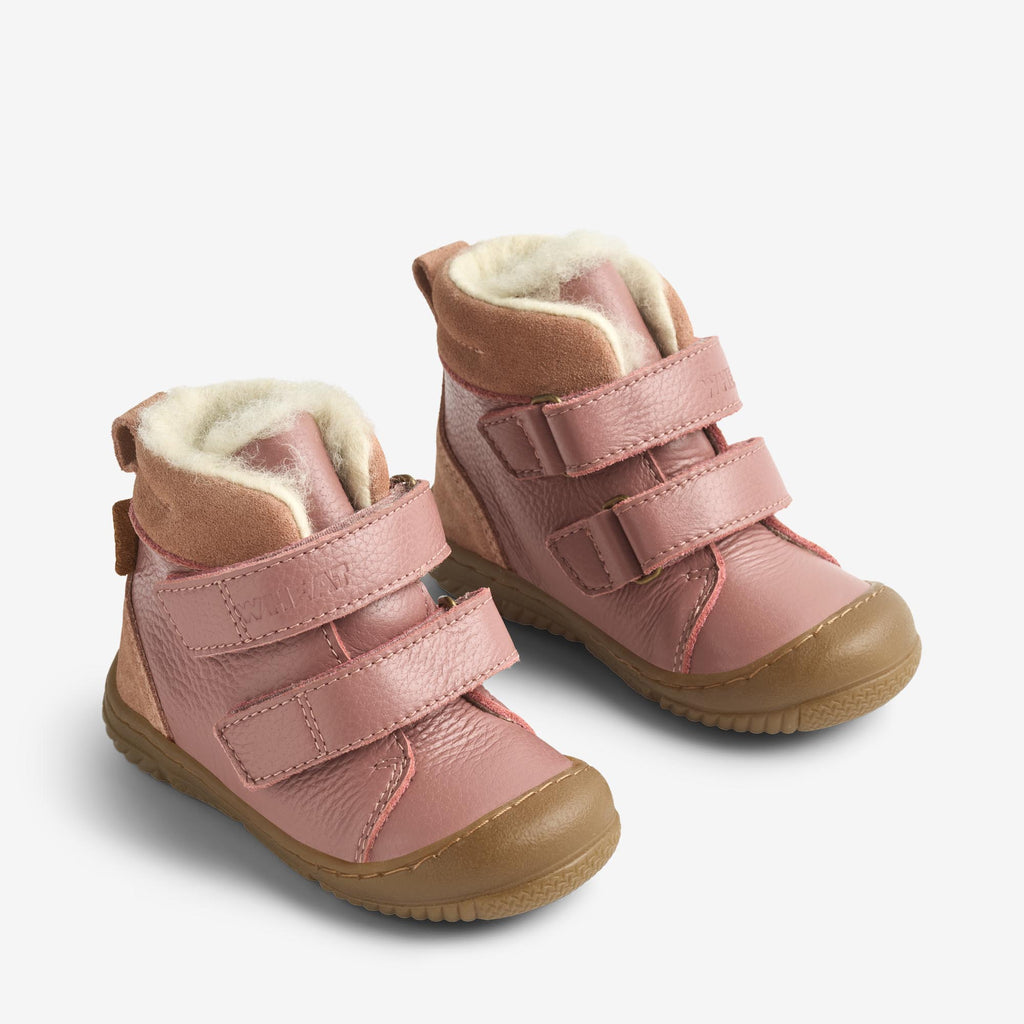 nb. The model is small in size, we recommend that you go up a size if you are in doubt.Comfy pre-walkers with double velcro closure for your toddler.- Wool lining- Tex membrane - Two velcro strapsWheat’s pre-walkers are lightweight, flexible and comfortable for your child to wear and are made to protect the tiny feet, when they go off on their first adventures. The boots are designed with a Tex membrane that is 100% breathable and waterproof, providing excellent protection for your child’s feet during the autumn and winter months. Prolonged exposure to very wet conditions may eventually allow moisture to seep through. For extended time in very wet environments, our winter rubber boots are recommended. The outsole is made of rubber, which is very light and offers great traction and flexibility. It is designed to cover the toes to offer extra protection.Recommended allowance for growth: 1-1,5 cmInner measurement:Size 19 = 12,3 cm Size 20 = 13 cm Size 21 = 13,7 cm Size 22 = 14,2 cm Size 23 = 14,9 cm Size 24 = 15,8 cm Size 25 = 16,4 cm Size 26 = 17 cm