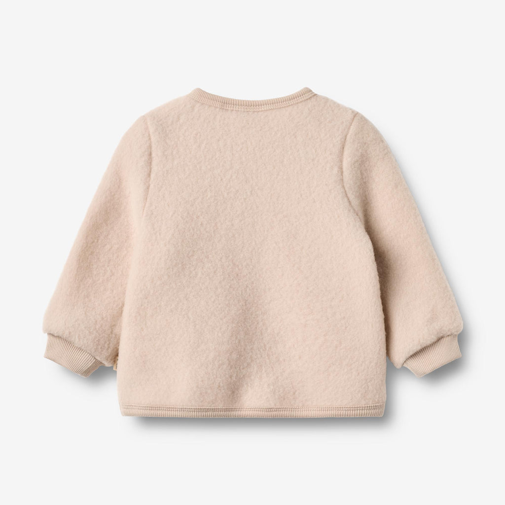 Long-sleeved wool cardigan in felted merino wool for your baby. - Regular fit- Buttons down the front- Rib cuffs- Soft edge band at the neckline and bottom hem Wheat’s wool wear is specially designed to keep your child warm in the cold weather, while still keeping them from overheating, as wool has the unique quality that it helps regulate body temperature. The wool styles are great for layering and soft on bare skin.Wheat’s cardigans have a classic look with buttons down the front. The soft cardigan is comfortable to wear and a great addition to your child's autumn and winter wardrobe. It can be styled on its own as a light jacket with a T-shirt underneath and gives the outfit a cute look. It is also perfect as an extra layer underneath a jacket.